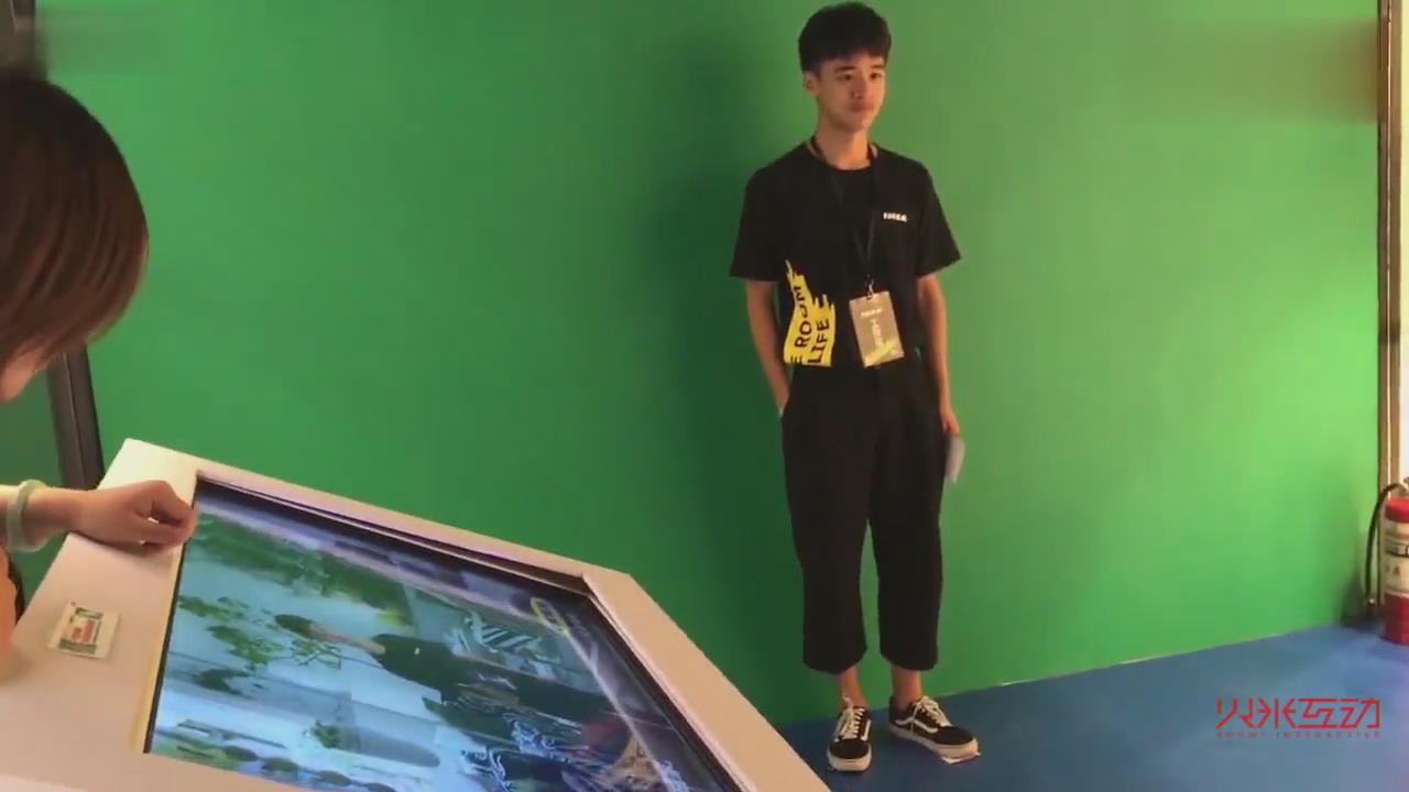 互動又稱AR拍照,觸摸屏和攝像頭進行畫面捕捉,利用小屏控制大屏幕并將照片放入大屏幕中,可根據特別定制的背景讓體驗者再互動娛樂的同時來參于并了解關注我們的主題,這也提高了摳像拍照的趣味性同時照片也可以微信分享與郵件發送。